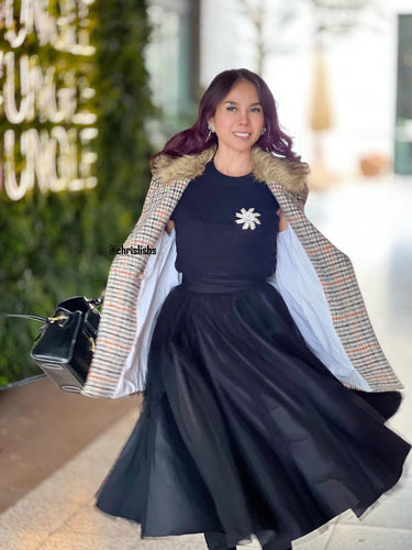 Liz Skirt with waist coat in Tweed Hounds Tooths Brown