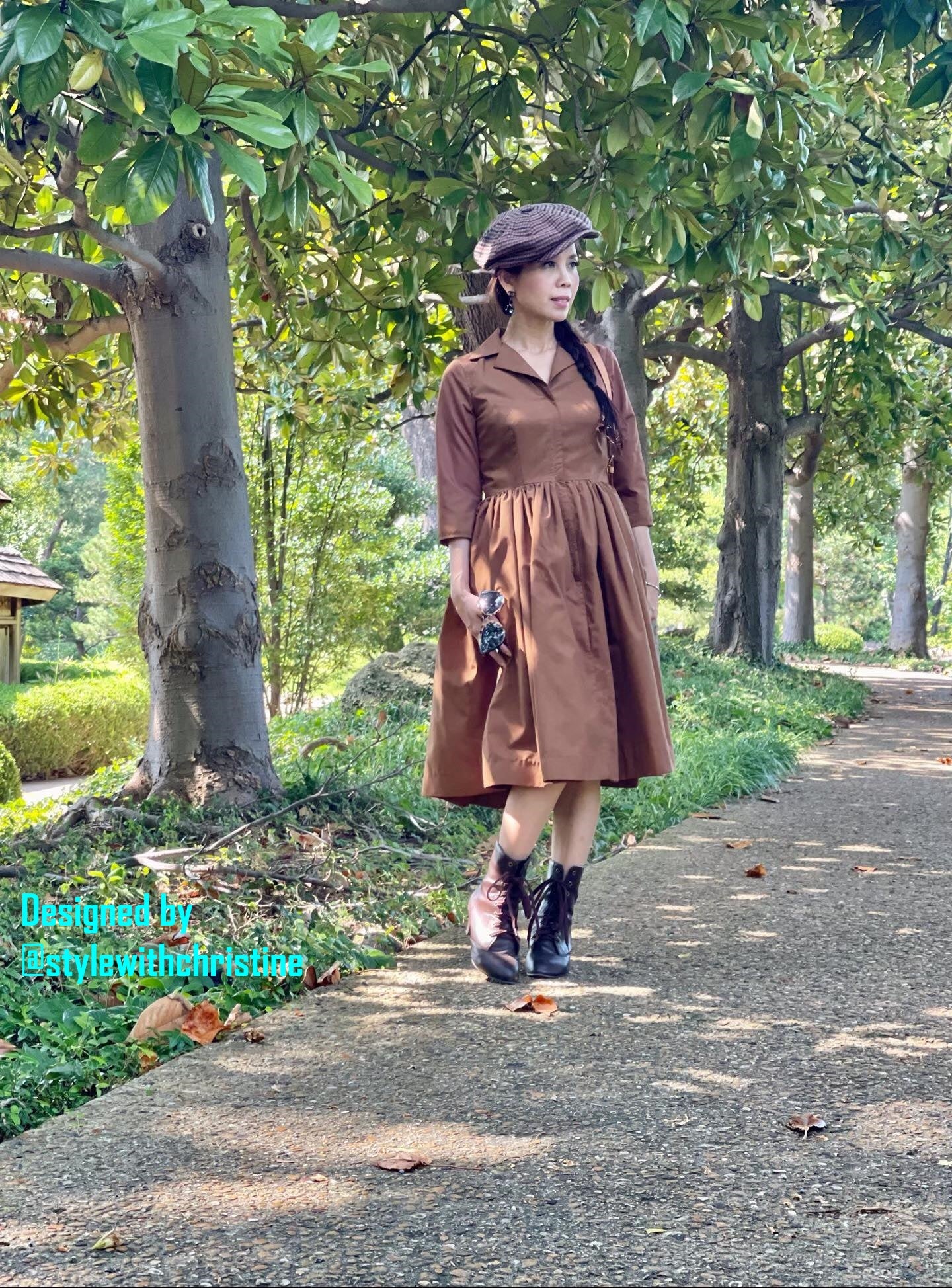 Fitted bodice with a nipped in waist and a full gathered skirt.
