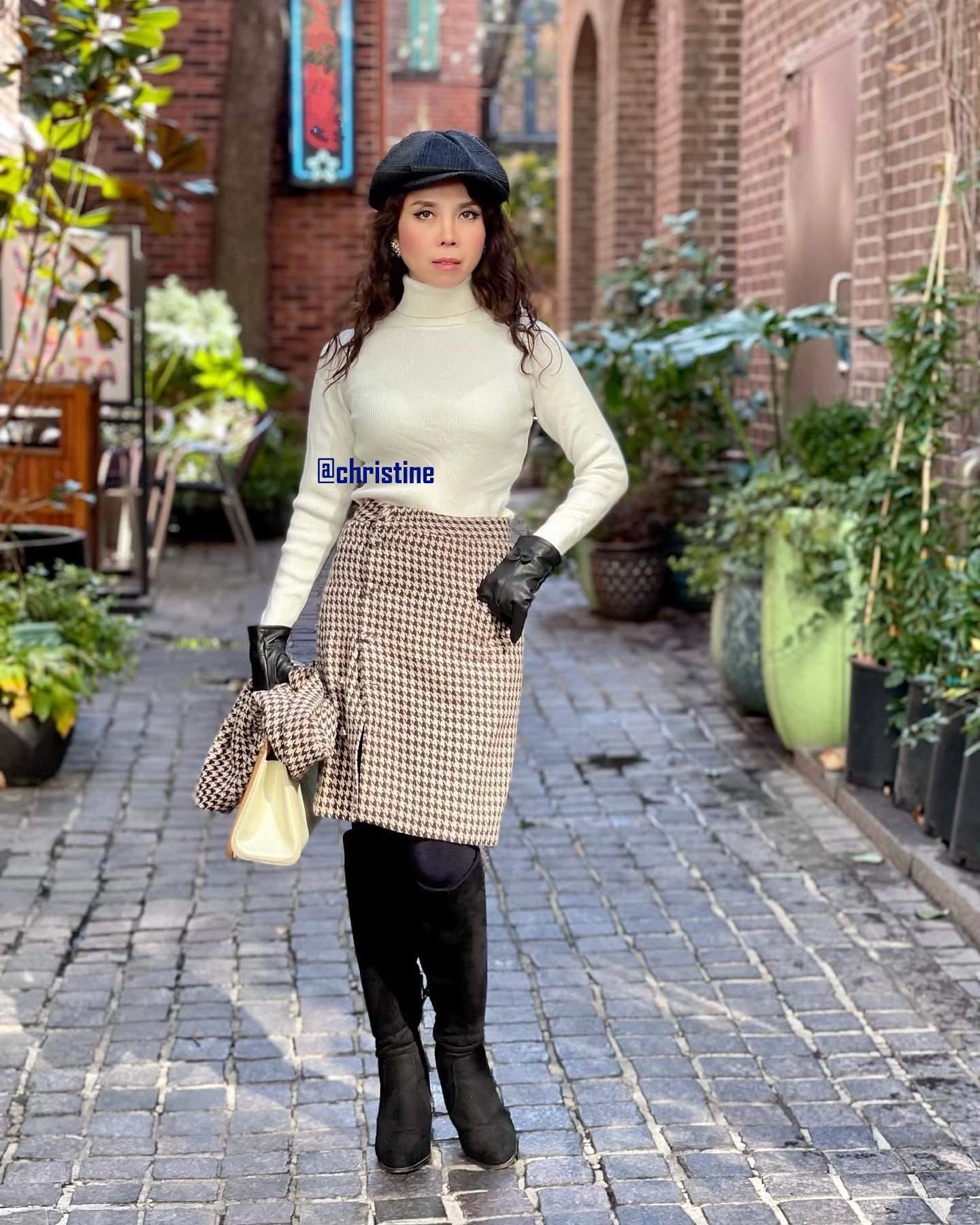 Liz Skirt with waist coat in Tweed Hounds Tooths Brown