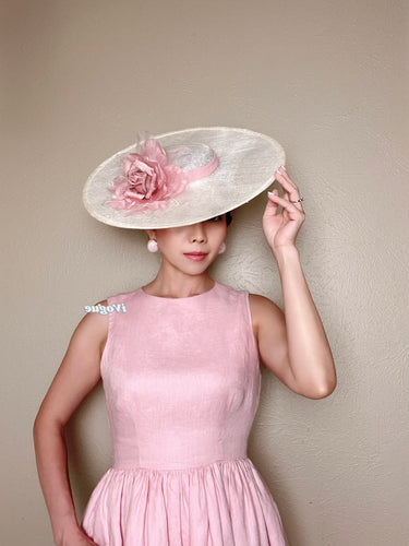 Natural Sinamay hat dusty pink velvet/chiffon rose