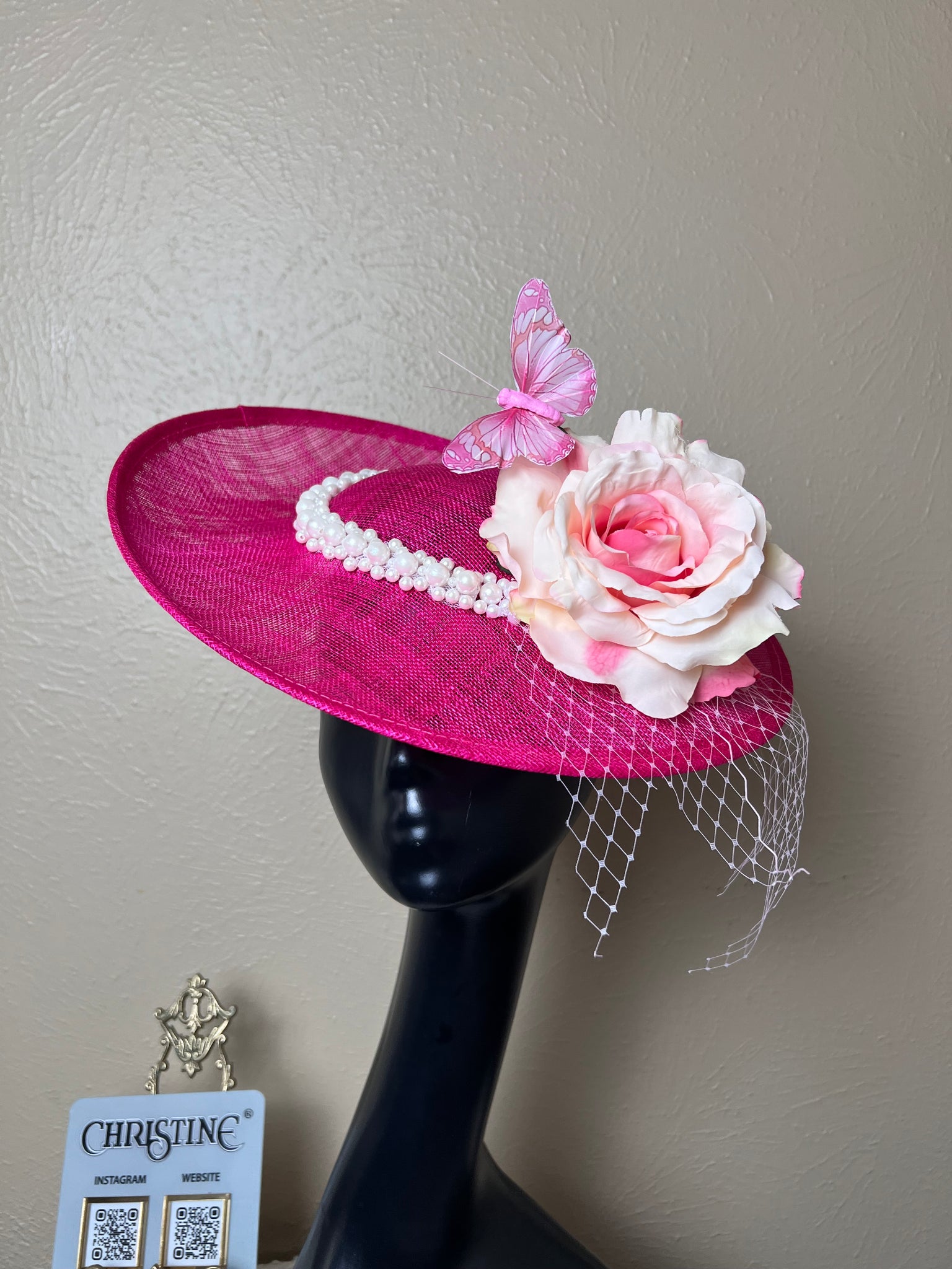 We used to assist our clients by ordering hats from other suppliers that matched Christine's outfit creations, but we no longer do this. However, the feedback was that these hats didnāt stay in place. So Christine came up with the idea to design hats that address this problem and match fabrics/colors with any of her designs. She has tested all her creations for both functionality and beauty.