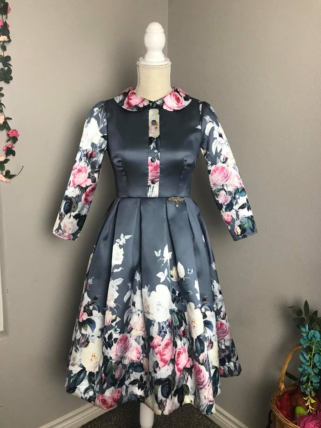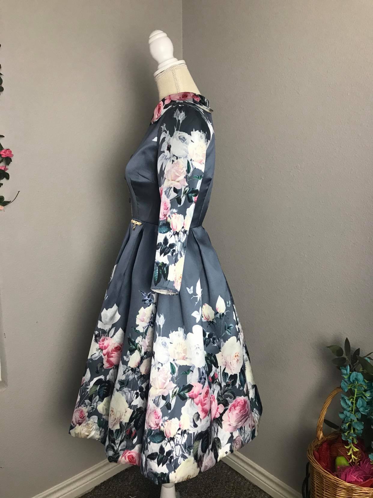 ♥ Fitted bodice with a nipped in waist and full gathered skirt.