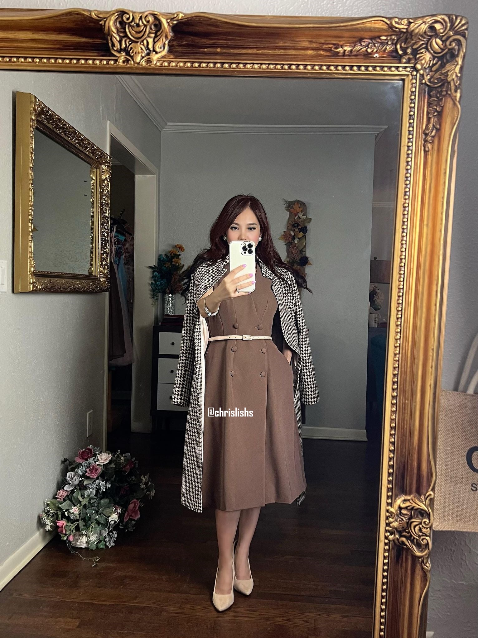 Dress only, coat and turtleneck aren't included.
