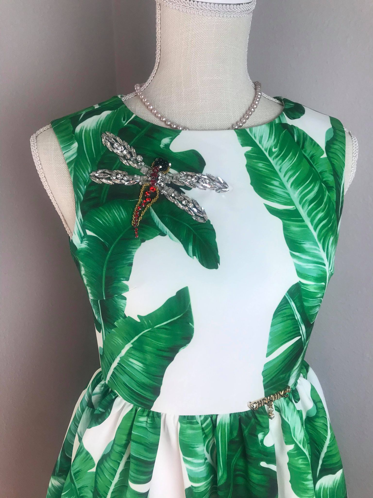 ♥ Hand-stitched Dragonfly gemstones brooch side of front