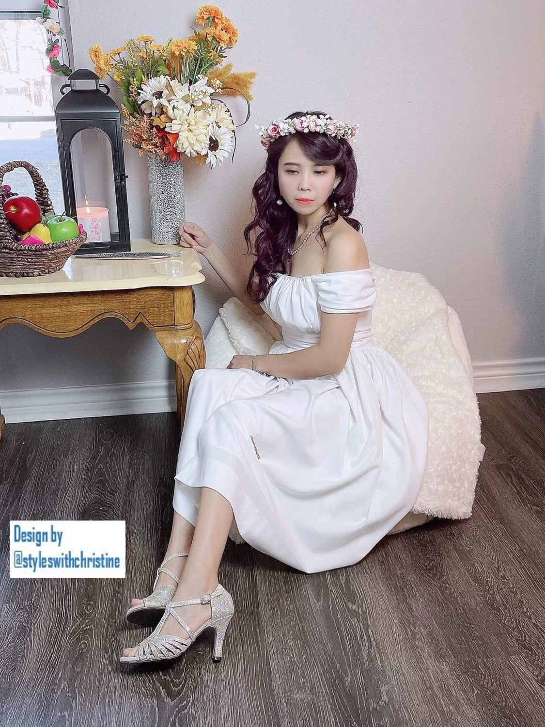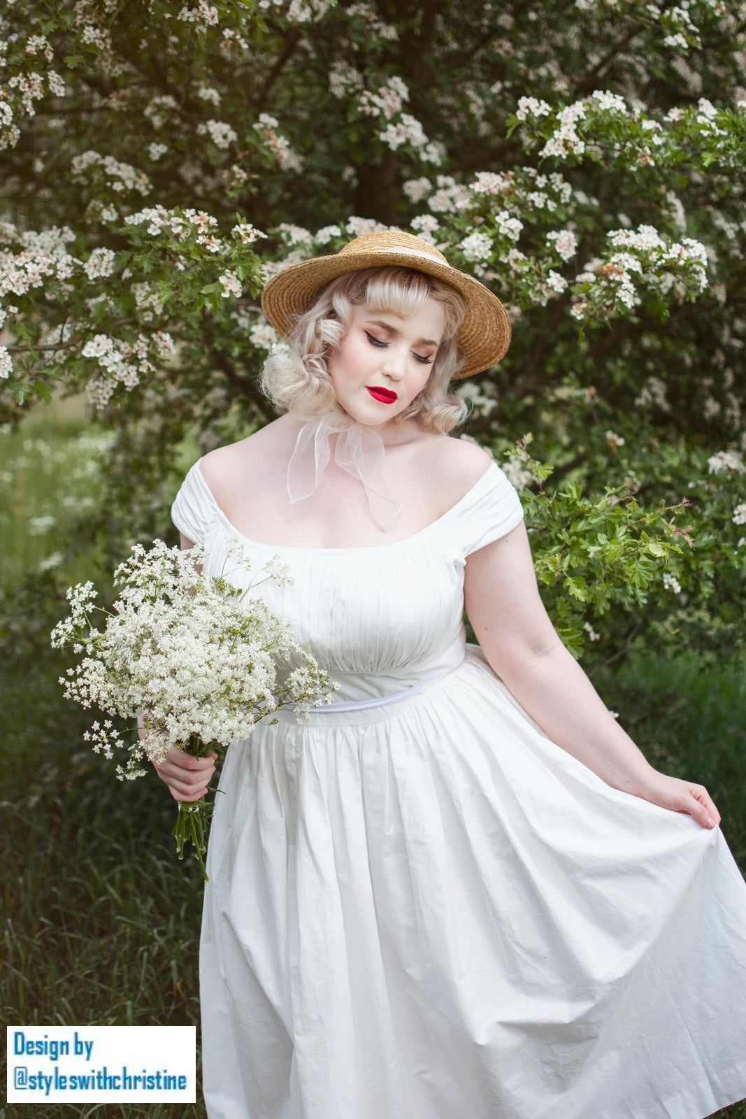 ♥ Gathered shelf bust, fitted bodice with a nipped in waist and a full gathered skirt.
