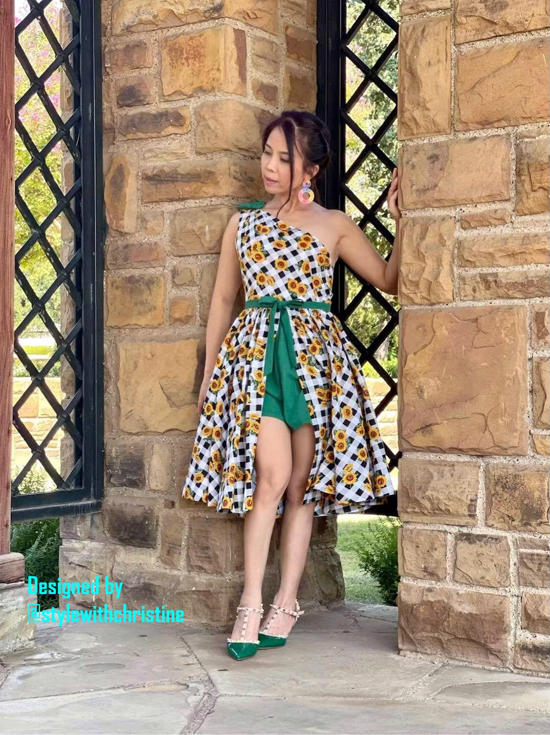 ♥ Fitted bodice with a nipped-in waist and a full gathered skirt/opened with pants inside