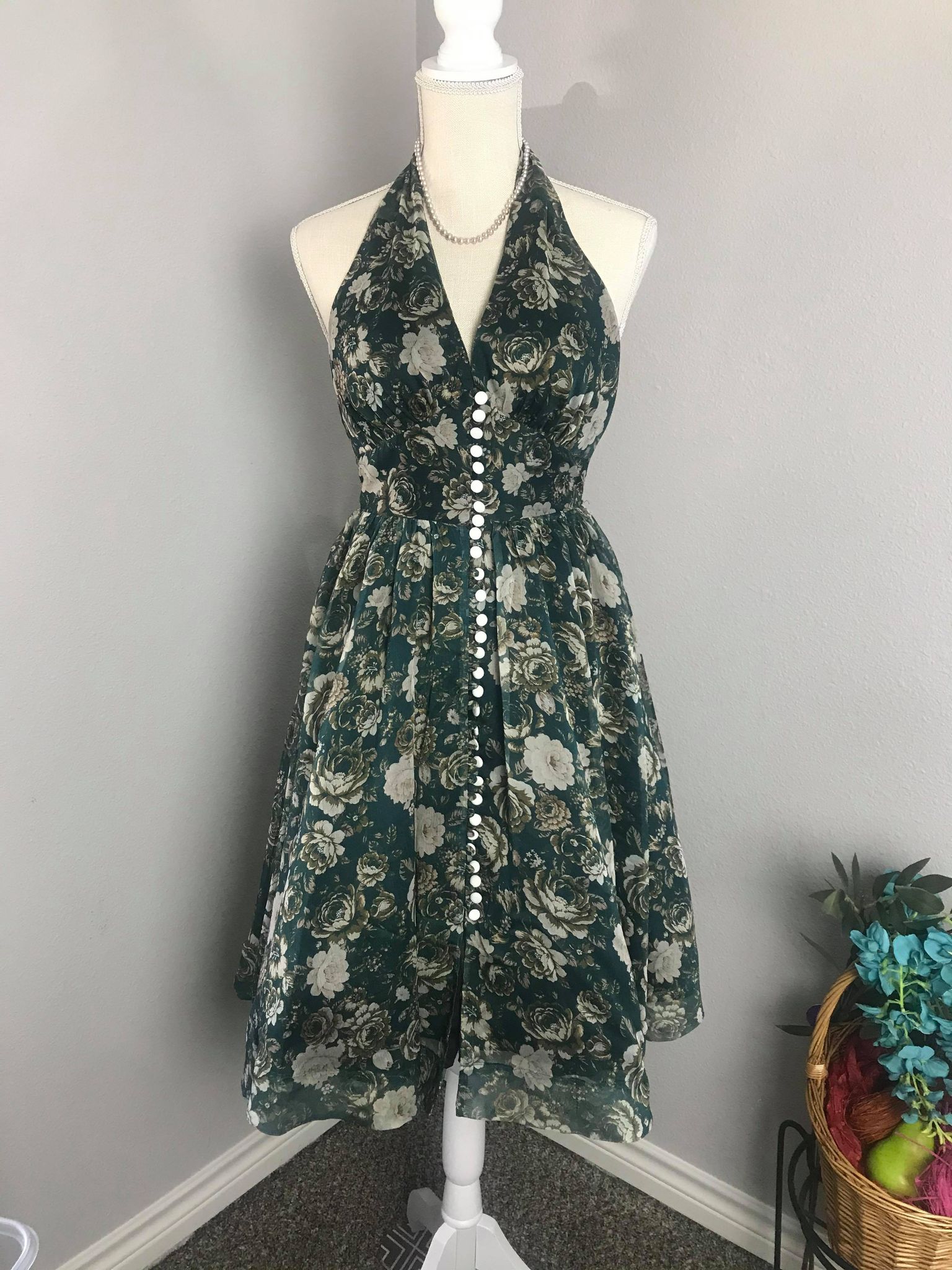 8/ S Bust: 35”, Waist 27", Bottom 38"