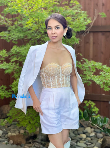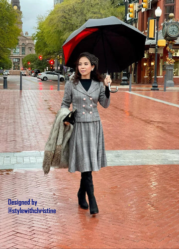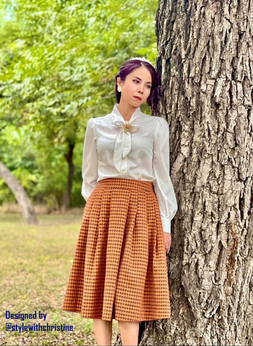 Liz Skirt with waist coat in Tweed Hounds Tooths Brown
