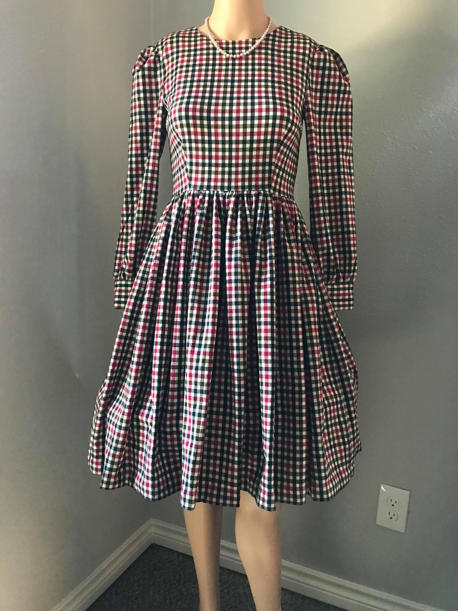 Embrace the past and relive the fabulous forties in this beauty. Eileen embodies a classic sophistication with a rounded neckline and lightly gathered full length cuffed sleeves.