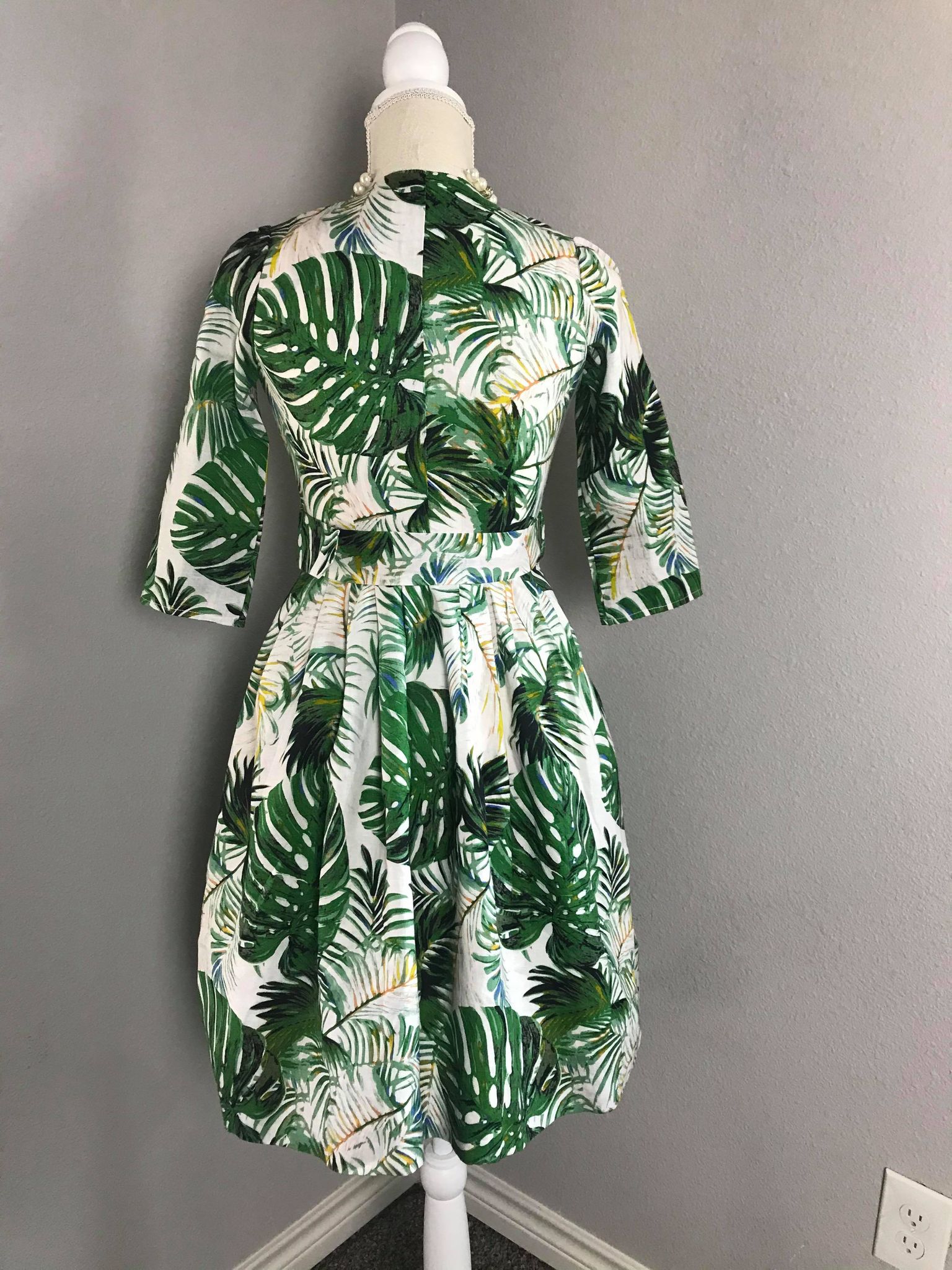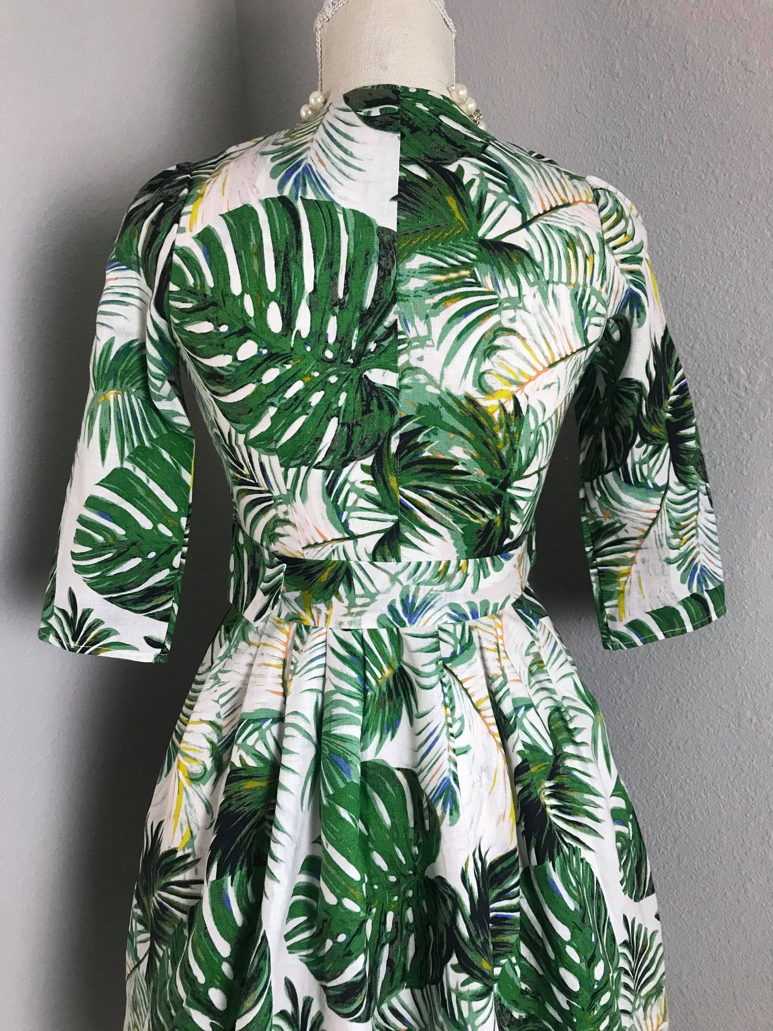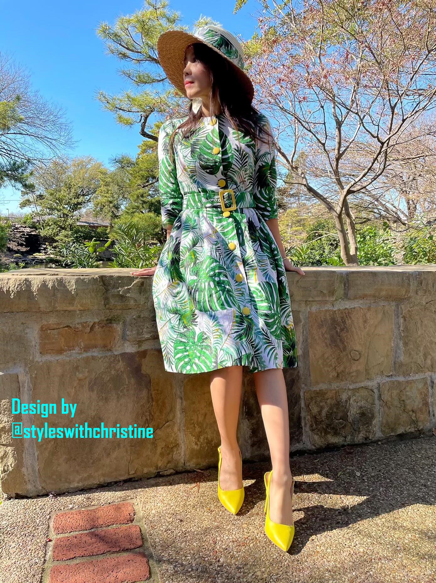 If you would like to have it in a different color or print, just choose from any of our available fabrics in our shop. Here we go Becky Dress in Solid cotton Tropical Leaves – Style with Christine