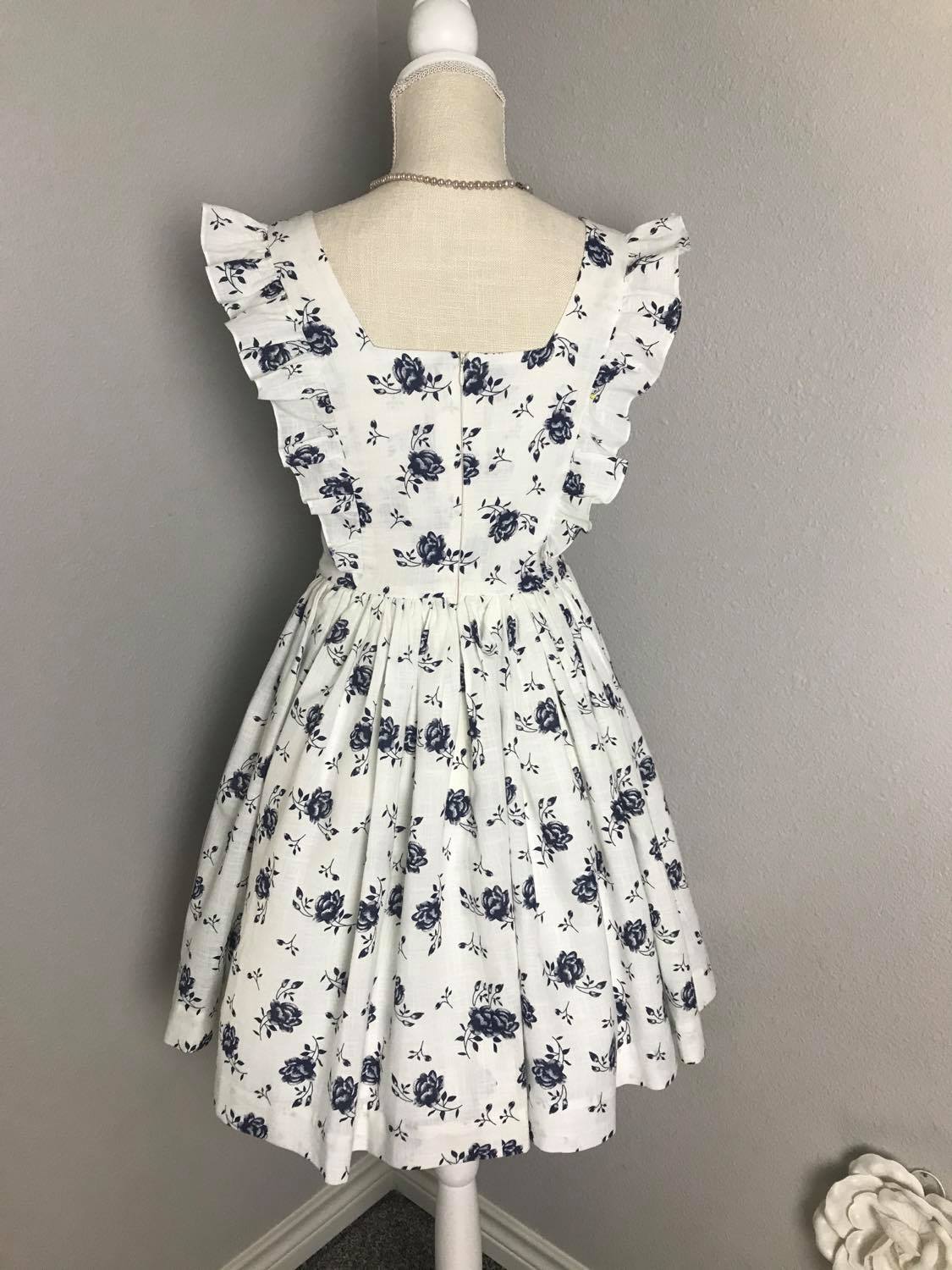Pinafore Dress in Roses Linen size S - Shop women style vintage, Audrey Hepburn jackets online -Christine